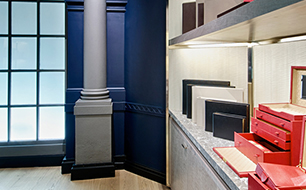In collaboration with Smythson’s board of directors, including Creative Consultant Samantha Cameron, Waldo Works looked to the heart of the brand to relay a true sense of its place and origins. The store pays homage to the great London houses lost in the war, and is constructed as a series of private rooms. Seemingly monochromatic, the architectural shell is treated in shades of grey, to frame and emphasise the blocks of colours of the product. With a humorous take on Britishness, this greyscale represents a thick London sky and a nod towards the black houses of Mayfair, which disguised the dirt of pre-war London.